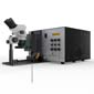 A compact, production-ready welding system combining TIG sheath welding and capacitance discharge (CD) conductor welding into a single precision workstation for thermocouple manufacture. The machine delivers micrometer-accurate weld positioning and consistent weld quality across a wide range of cable diameters. Wear-resistant Elkonite jaw sets are used to withstand the thermal and electrical demands of both TIG and CD welding, ensuring long service life in production environments. A Nikon stereoscopic microscope with high-intensity LED ring illumination provides clear inspection of the weld zone, while a dedicated welding-glass viewing window allows real-time observation during operation. Designed for sustained duty, the system incorporates active forced-air cooling and electrically over-rated key components for reliability.